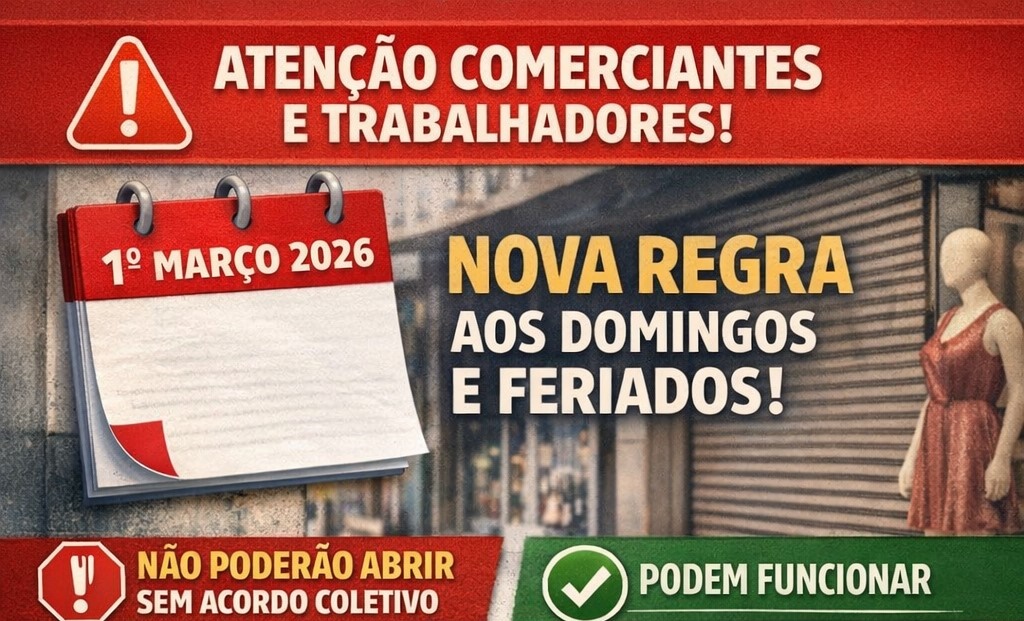 Leia mais: A partir de 1º de março de 2026 nova regra muda o funcionamento do comércioATENÇÃO COMERCIANTES E TRABALHADORES A partir de 1º de março de 2026 entra em vigor a nova exigência do Ministério do Trabalho que determina que o funcionamento do comércio…