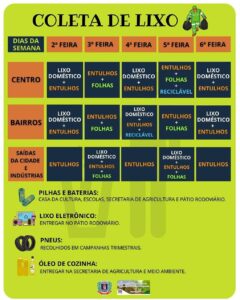 A gestão municipal mantém um cronograma de coleta regular que atende todo o município, garantindo que o lixo doméstico e urbano seja recolhido de forma adequada e segura. Além disso, a Prefeitura disponibilizou uma caçamba no Pátio Rodoviário, para atender os moradores que necessitam realizar o descarte de resíduos nos finais de semana, reforçando o compromisso da administração com a limpeza, a saúde pública e o desenvolvimento sustentável de Japurá.
